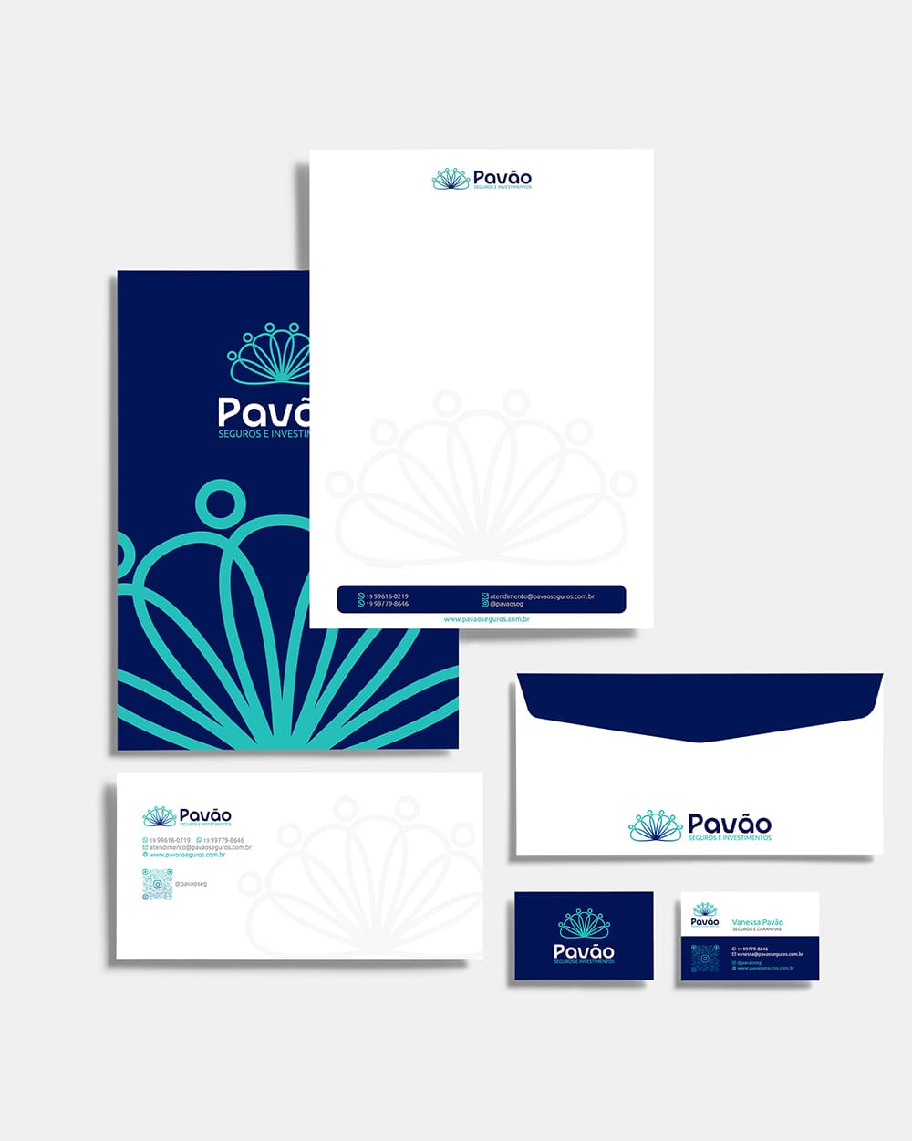 A nova identidade visual da Pavão Seguros e Investimentos representa proteção, planejamento e conexão com o futuro.
