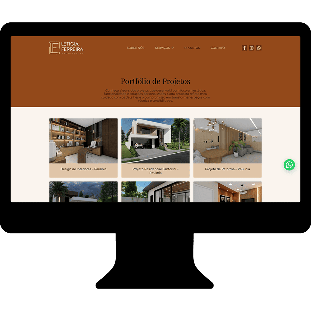Além de destacar serviços e projetos com sofisticação, a plataforma conta com um sistema interno de gestão simples, permitindo que a equipe atualize o portfólio com autonomia e praticidade.